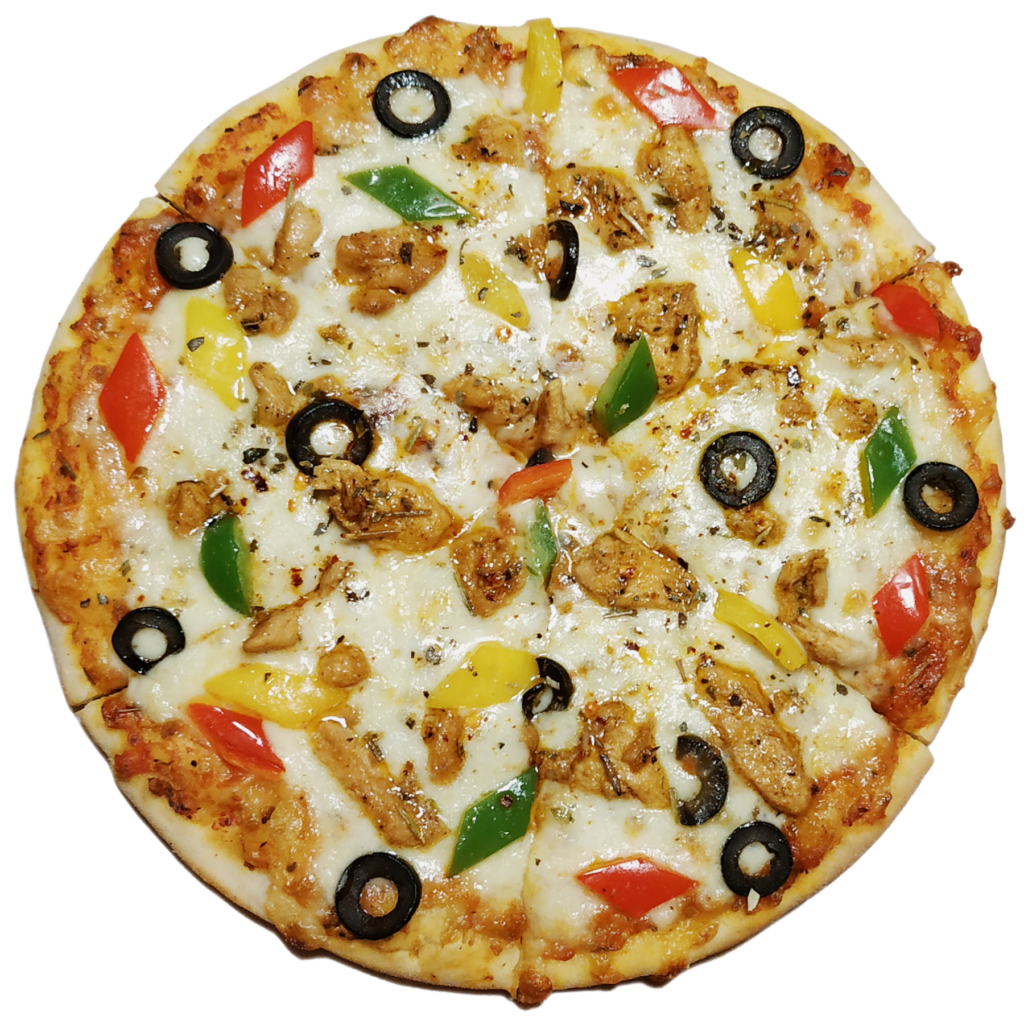 Marinara Sauce, Grilled Chicken, Onions, Black Olives, Jalapeño, Feta and Mozzarella Cheese.