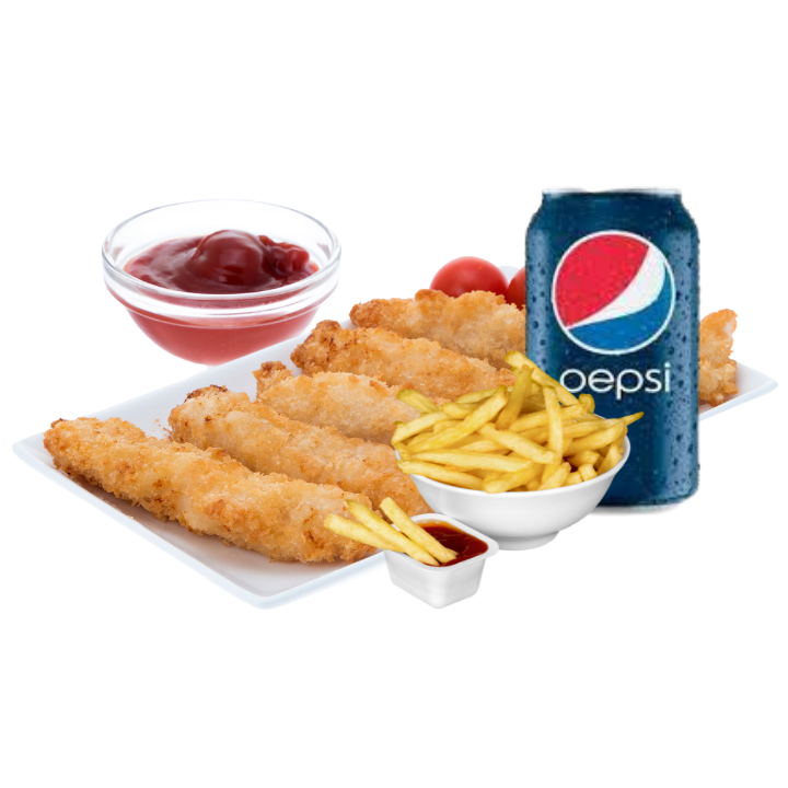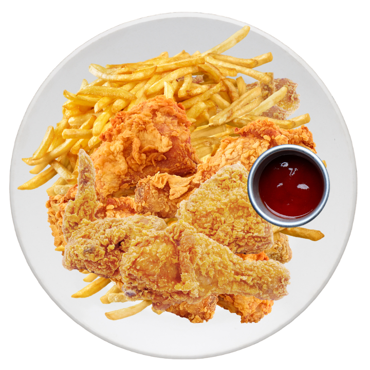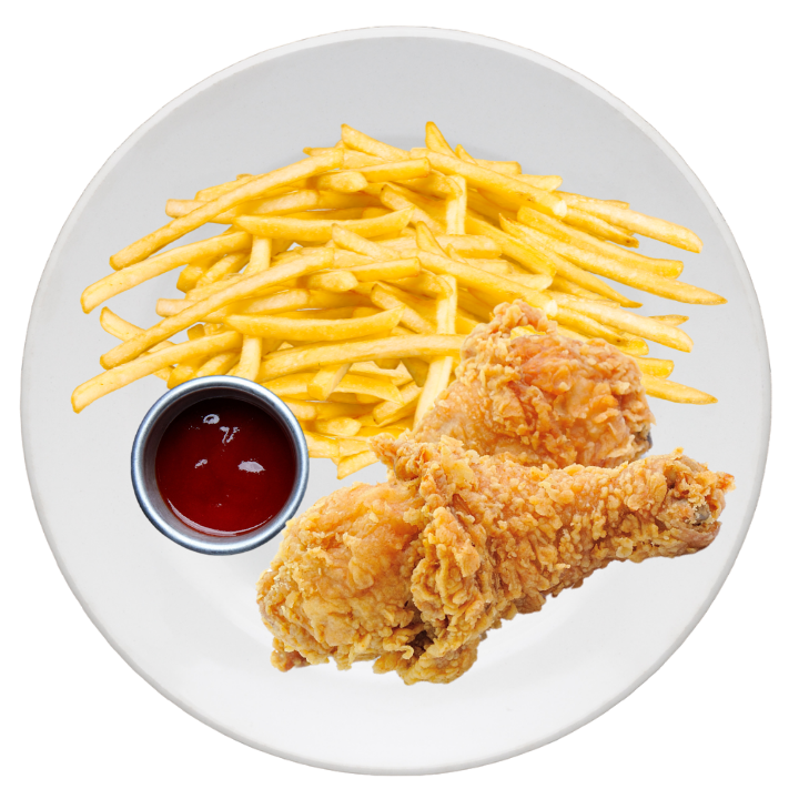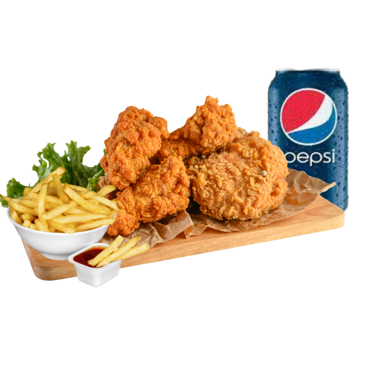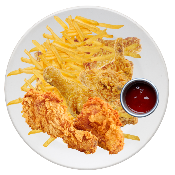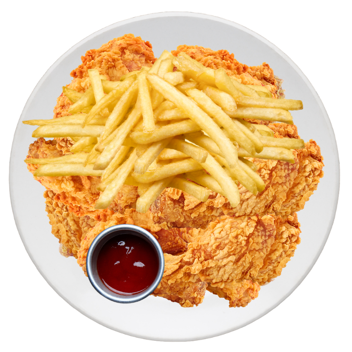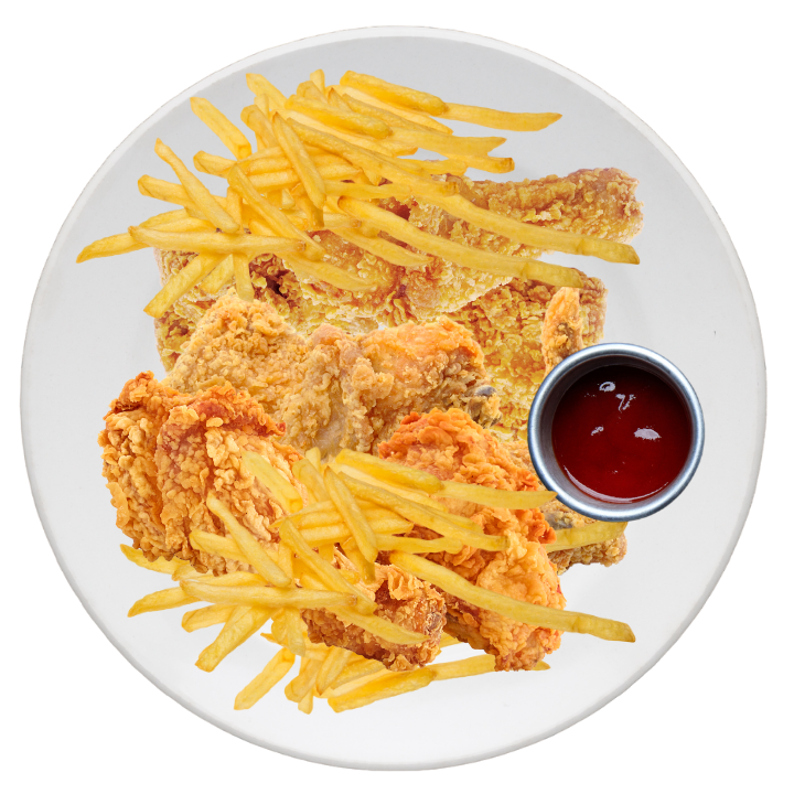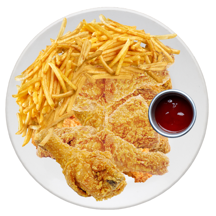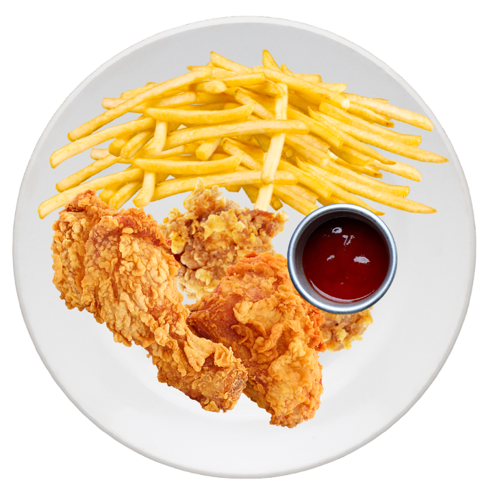 3 Pieces of Chicken, Fries, gravy/ hot sauce, and drink